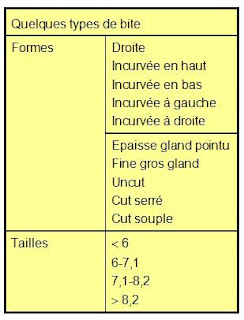 Quant à savoir combien il existe de variétés de bites, c'est compliqué, mais si on considère quelques critères de forme (10) et de taille (4),